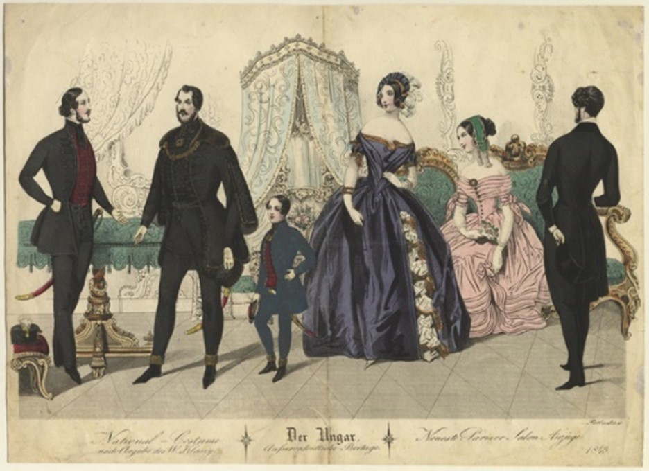 Az 1848-as forradalom és szabadságharc leverése után – az elsősorban a magyar nemesi díszöltözet hagyományain nyugvó – nemzeti viselet hazánkban valódi divattá lett (a témáról bővebben lásd: Lukács 2017). De ezen túlmenően eszmét, gondolatiságot maga elé kitűző mozgalommal kapcsolódott össze, melynek célja a nemzeti egység hangsúlyozása, az önrendelkezés és a szabadságjogok kivívása volt. Az sem meglepő, hogy a nemzeti divat terjesztésébe gazdaságilag is érdekelt szereplők kapcsolódtak be, és lettek annak fő mozgatórugói. Híres pesti szabók, elsősorban Kostyál Ádám, Klasszy Vencel, Tóth Gáspár és Eisele Antal nagy erőfeszítéseket tettek annak érdekében, hogy az általuk megújított, változatosan és magas minőségben készített magyar öltözetek széles körben elterjedjenek. Kihasználva a sajtó nyújtotta lehetőségeket, rendszeresen jelentettek meg divatképeket az egyre népszerűbbé váló divatlapokban.